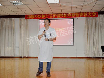 最后,黄院长发表结束语,对各科室的表演展示给予表扬,并对全院护理人员致以节日的问候,希望在日后的工作中继续发挥南丁格尔精神,并且要求不单单是护理人员而是全院职工都要做到言行文明、待人友善,以“一切为了病人”为宗旨继续做好优质服务。