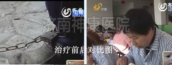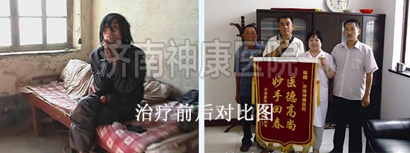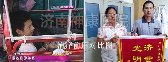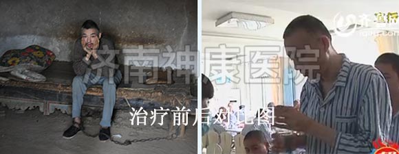 泰安马庄镇的村民巩大嫂患者有多年的精神分裂症,只要一发病脱了衣服就往外跑,看见围墙就往上爬,遇见邻居就破口大骂,丈夫为了防止妻子再次出去闯祸、扰乱邻居,无奈之下,只好用一根铁链锁住了她的双脚。2012年2月,巩大嫂的事件被媒体报道后,引起了神康医院的关注,经过一个月的综合系统治疗之后,巩大嫂面色红润了不少,生活已经完全可以自理了,自语自笑、妄想的症状也全部消失了,已达到临床有效治疗出院的标准。详情点击:泰安大嫂精神分裂 神康医院免费治疗