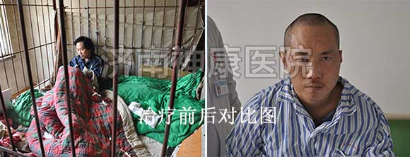 山东菏泽29岁的马海光因受惊吓患了精神分裂症,狂躁打人,母亲迫不得已用铁链拴了13年,去过多家医院治疗病情无好转,只好来到济南沿街乞讨希望有爱心医院帮助儿子。2015年7月8日,济南神康医院得知母子的情况,愿意免费为马海光进行治疗。经过两个月的精心治疗,马海光已经有效治疗了,如今的马海光精神状态变好了,他自己还说出院后去工地上做个小工,开始他新的人生。查看详情:【都市新女报】2015年8月 菏泽精分患者马海光有效治疗出院