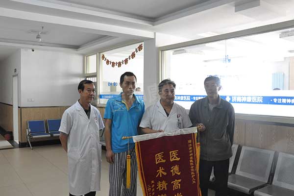 经过一个多月的专业治疗,孙科的病情在逐渐地好转,现在的孙科能和别人交流并主动跟他人PK乒乓球技了,与之前孤僻不语,独自傻笑的小伙儿判若两人。在中秋来临之际,孙科的主治医生表示他已达到出院标准,可以回家和父亲过个团圆的中秋节了。9月12日,孙科的父亲早早来到医院接他出院,父子见面后紧紧拥抱在一起,场面温馨感人,父亲为表示感谢还特意带来了锦旗。