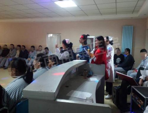 联欢会上,医护人员为广大患者、家属奉献出精心准备的多彩节目,带动了现场的节日气氛,击鼓传花、读绕口令等丰富的互动游戏使患者与家属乐在其中,更多患者踊跃参与,他们的诗朗诵、歌曲演唱、武术表演赢得阵阵掌声。