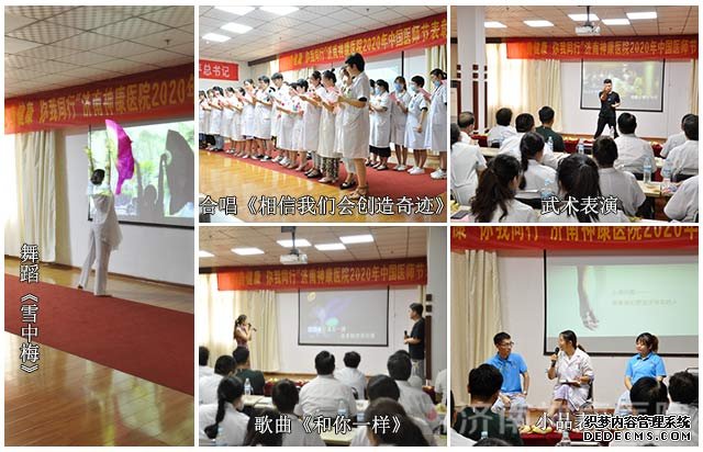 庆祝会上,《我是神康好医生》、《雪中舞》、《相信我们会创造奇迹》、《祈祷》、《只要有你》、《和你一样》、《生命的旅程》、《我的朋友们》、《我的中国心》、《爱你》等节目全部由医院医师和职工自编自演,通过音乐、舞蹈、小品、武术、手语舞、诗朗诵等艺术形式,既有展现健康之美的美好愿望,又有医护人员辛勤付出的真实再现,精彩又有深意,赢得台下阵阵掌声。